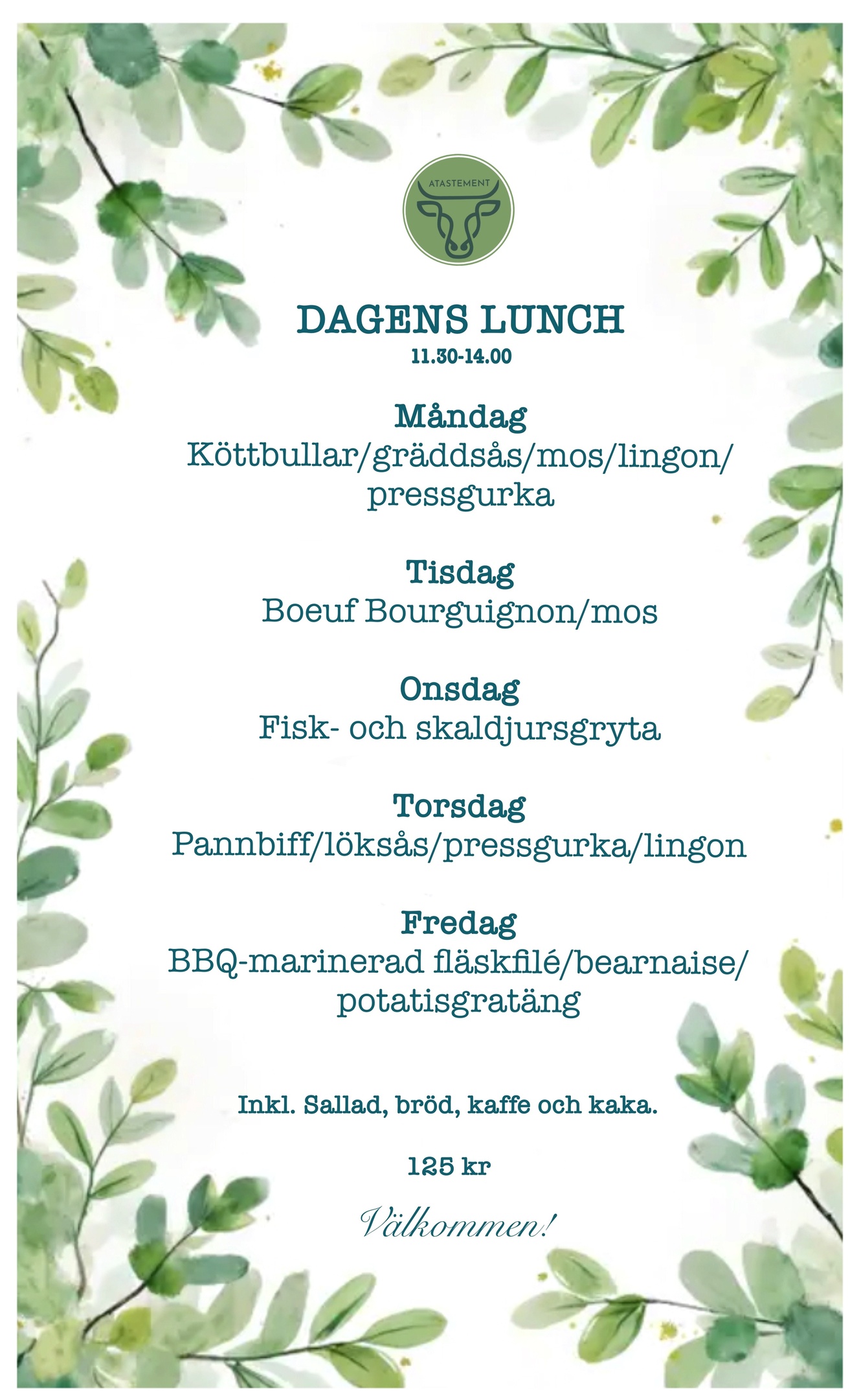 I lunchen ingår salladsbuffé, kaffe och kaka.